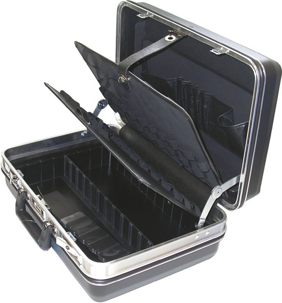 In robusto e leggero materiale ABS antiurto, rinforzate con telaio in alluminio, con bordi e spigoli arrotondati. Chiusura a 2 stabili serrature, con chiavi e combinazione. Robusta maniglia snodata. Corredata di 1 pannello con 2 pareti ad alloggiamenti a elastici, vaschetta con divisori regolabili, coperchio ad alloggiamenti a elastici e pannello porta-documenti, penne, blocchetti, calcolatrice, ecc. Peso Kg 4,9.