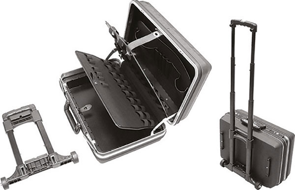 Tipo industriale con grande capacità di stivaggio, carrello con ruote gommate e asta telescopica, con maniglia, sganciabile. In robusto e leggero materiale ABS di ultima generazione, antiurto, rinforzato con superficie a rilievi, in gomma con trama, antisdrucciolo per evitare cadute o spostamenti indesiderati. Telaio in alluminio a tempra speciale con bordi e spigoli arrotondati e protetti da gomma di elevato spessore. Chiusura ermetica a 2 serrature TSA, in acciaio, con chiavi, combinazione, a 3 cerniere. Robusta maniglia snodata, avvitata per una eventuale semplice sostituzione. Corredata di 1 pannello con 2 pareti ad alloggiamenti elastici, vaschetta con divisori regolabili e coperchio con alloggiamenti elastici e tasca porta-documenti. Peso kg 6,9. Portata fino a kg 40. Idonee anche per il trasporto in aereo.