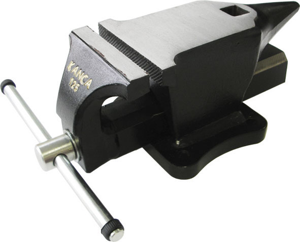Tipo fisso da banco combinato con incudine di grande superficie (mm 90x160), portatasselli con foro quadro (mm 25x25) e 1 corno. Esecuzione interamente in acciaio forgiato. Indistruttibile, a ganasce fresate con piani di serraggio e superficie dell'incudine trattati con tempra supplementare (durezza da 54 a 56 HRC). Guida di precisione per un facile scorrimento.