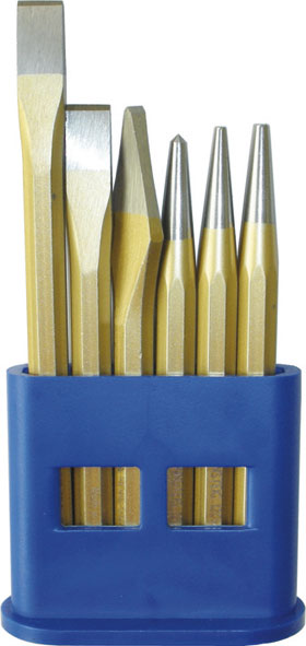Composizione:2 scalpelli ottagonali mm 125 e 1501 unghietta ottagonale mm 125 1 punzone 2927 GF mm 31 punzone 2927 GF mm 41 punteruolo 2927 GD Gr. 1Assortimento completo. In pratico supporto di plastica.