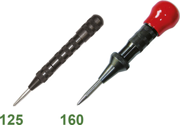 Tipo a percussione automatica con meccanismo a molla per uso a mano. In acciaio al CROMO-VANADIO, con punta in acciaio speciale. Esecuzione brunita. Possibilità di regolazione della profondità di bulinatura mediante rotazione della ghiera godronata. Elevata forza di punzonatura. Parte terminale sferica, in materiale sintetico per un comodo uso (solo misura mm 160).