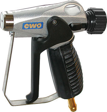 Tipo industriale per lavori gravosi e continuativi. Per lavaggio con acqua. Grazie al corpo completamente in alluminio, l'impugnatura in morbida gomma ad alto spessore, alla leva in materiale composito si è raggiunto un notevole risparmio di peso e una ottimale presa che permettono elevati risparmi di fatica del braccio e della mano. Applicando il beccuccio da mm 2 (in dotazione) funziona con la pressione normale della tubazione d’acqua, applicando il beccuccio da mm 4 (a richiesta) il getto è regolabile da pieno fino alla nebulizzazione. Attacco gomma 1/2". Pressione fino a 25 bar (Atm). Peso grammi 700.