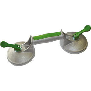 Con ventose in gomma CHIARA per sollevamenti senza lasciare tracce di gomma nera. Costruite secondo le norme Europee, con impugnatura ergonomica. Ventose di gomma ad alta tenuta diametro mm 120, intercambiabili. Tipo con 2 ventose, bloccaggio a leva. Portata max kg 60.