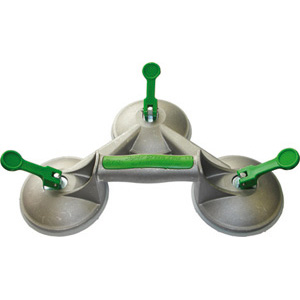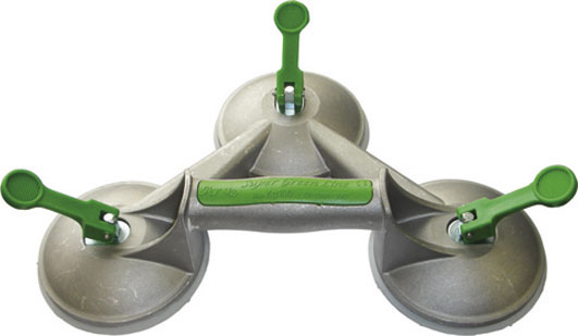 Con ventose in gomma CHIARA per sollevamenti senza lasciare tracce di gomma nera. Costruite secondo le norme Europee, con impugnatura ergonomica. Ventose di gomma ad alta tenuta diametro mm 120, intercambiabili. Tipo con 3 ventose, bloccaggio a leva. Portata max kg 100.
