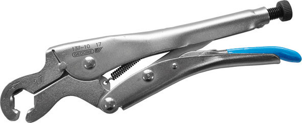 Ganasce in acciaio legato. Bloccaggio e sbloccaggio immediati. Tipo a chiave a forte presa con sistema a grip che evita l'involontaria apertura delle ganasce. Per luoghi accessibili con difficoltà, per dadi anche usurati, difficilmente svitabili. Particolarmente adatte per linee dei freni, tiranti trasversali, ecc.
