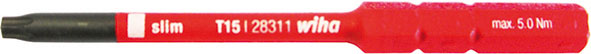 Utensili a isolamento fino a Volt 1000 con marchio di prova VDE - EN 60900. LAME PER IMPUGNATURE DINAMOMETRICHE ART. 350 GA In acciaio CROMO-VANADIO, temprato, brunito. Lunghezza lama mm 75.