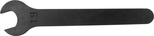 In lamiera d'acciaio speciale, temprata. Tipo con una bocca particolarmente sottile per uso in spazi ristretti. Esecuzione brunita.