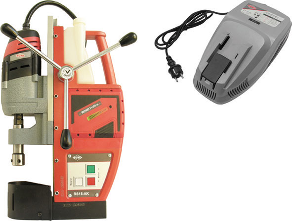 Costruzione robusta, compatta, stabile, con supporto magnetico che permette l'impiego verticale, orizzontale o capovolto. ELEVATO NUMERO DI FORI PER OGNI CARICA. Corredato di batteria al LITIO molto potente, staccabile e ricaricabile in tempi brevi (60 min). Con caricabatteria V 230. Con dispositivo che permette al magnete di rimanere in trazione anche quando la batteria è scarica. Lubrificazione automatica. Attacco Weldon Ø mm 19. In pratiche valige di trasporto.