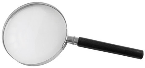 Tipo per uso a mano con lente tonda. Montatura in metallo.