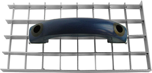 Tipo grigliato in acciaio temprato, zincato. Impugnatura in morbido materiale, antiscivolo.