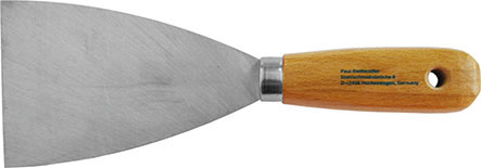 Tipo in acciaio speciale temprato, flessibile. Impugnatura in legno con foro.