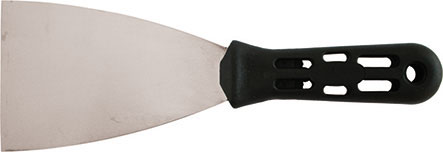 Tipo in acciaio INOX, flessibile. Impugnatura in materiale plastico con foro.