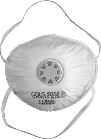 Tipo professionale con filtro a doppio strato, RIUTILIZZABILE, con valvola di espirazione, bordo di tenuta totale, stringinaso ed elastici termosaldati.