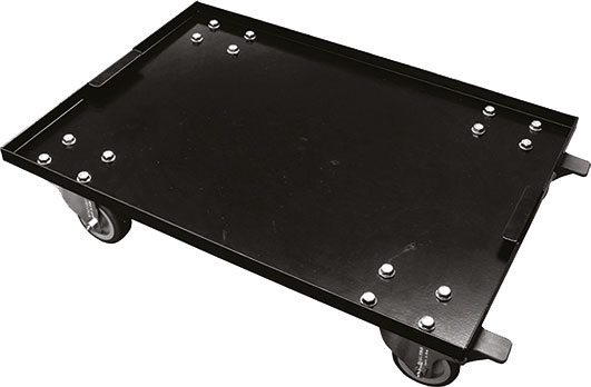 Robusto carrello con base in lamiera d'acciaio, 4 ruote, in gomma, piroettanti di cui 2 provviste di freno.Adatto per il facile spostamento delle cassette Art. 2088 A a 2088 H.Portata Kg 200. Dimensioni mm 470x340. Peso Kg 3,24.
