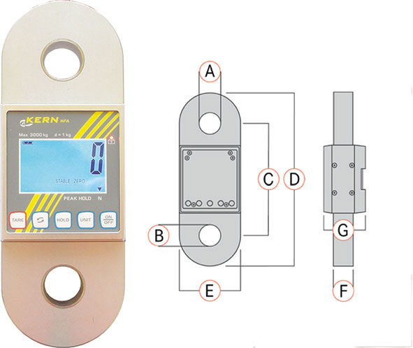 Tipo digitale di elevata qualità, peso ridotto, dimensioni compatte, robusto con requisiti di prova e sicurezza secondo le norme Europee EN 13155/EN 61010 e norme tedesche TÜV-GS. Corpo in alluminio con boccole in acciaio INOX per le capacità fino a Kg 600-1000-3000, corpo in acciaio per le capacità fino a Kg 5000 e 10000. Con display LCD, retroilluminato, a 5 digit (alt. cifre mm 23), con tasto HOLD di lettura prolungata del peso, tasto ON/OFF-UNIT per accensione, spegnimento e selezione unità, tasto TARE per inserimento tara. Funzionamento con accumulatore interno, autonomia 30 ore ca. senza uso della retroilluminazione, tempo di ricarica 12 ore ca., tramite alimentatore 240 V, in dotazione. Possibile funzionamento anche a 3 batterie alcaline tipo AA (ved. Art. 3600 E) non in dotazione. Precisione: ± 0,2% sul valore massimo scala. Fornito senza grilli e senza gancio.