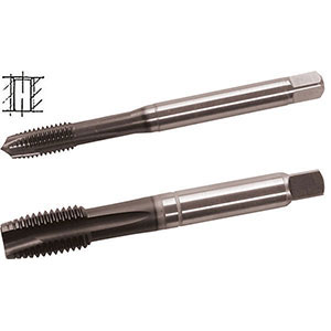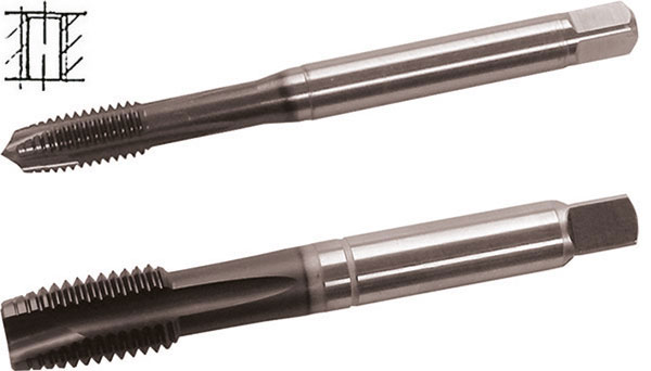 Gambo rinforzato (da mm 12, gambo passante), imbocco corretto per fori passanti. Filettatura: Metrica - Passo grosso M - DIN 13 (DIN 371/376). Tolleranza ISO2/6H. Uso destro. Con rivestimento TiAlN. Per tutti i tipi di acciai, anche bonificati non legati, INOX, acciai nitrurati, acciai non ossidabili e antiacidi fino a 1200 N/mm2, alluminio, sue leghe e metalli a truciolo lungo.