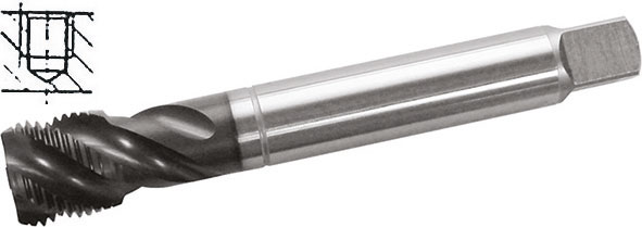 Gambo passante, con elica a 40° per fori ciechi profondi. Filettatura: Gas Cilindrica G - BSP - DIN 5156. Uso destro. Con rivestimento TiAlN. Per tutti i tipi di acciai, anche bonificati non legati, INOX, acciai nitrurati, acciai non ossidabili e antiacidi fino a 1000 N/mm2, alluminio, sue leghe e metalli a truciolo lungo.