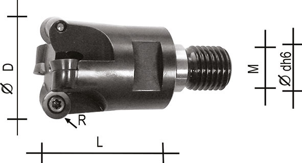 | Ø D mm | Lungh. L mm | Ø attacco M | Ø codolo d mm | Raggio R mm | Numero inserti Nr | Per inserti Art. (Cod. id.)