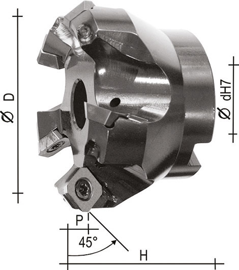 Tipo per SPIANATURA E COPIATURA a 45° con foro attacco e refrigerazione interna. SENZA INSERTI, con viti.
