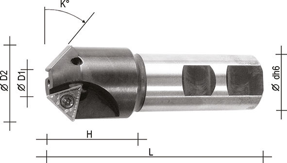 | Ø min D1 mm | Ø max D2 mm | Lungh. H mm | Lungh. totale L mm | Ø attacco d mm | Angolo K° gradi | Numero inserti Nr | Per inserti Art. (Cod. id.)