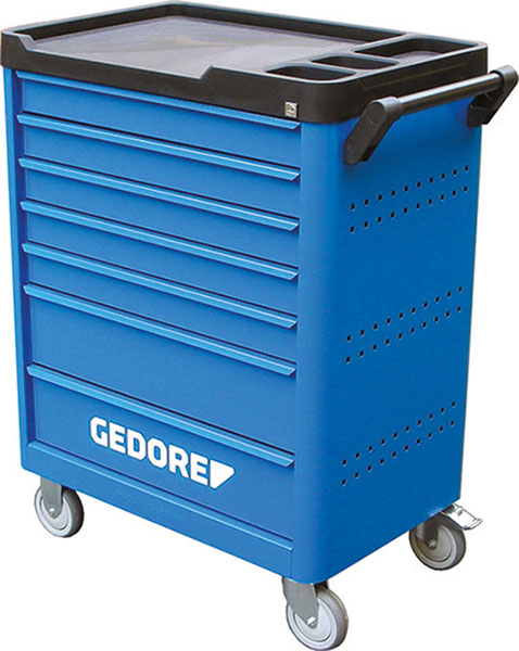 A 7 cassetti, dimensioni mm 640x400, 5 cassetti altezza mm 80, 2 cassetti altezza mm 162,5. Portata kg 400 in movimento. Con maniglia di trasporto. Fianchi con fori mm 10x38 per l'applicazione di ganci Art. 995 GT. Senza utensili.
