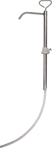 Tipo completamente in acciaio INOX AISI 316 e guarnizioni in resina anaerobica PTFE, indicato per prodotti chimici fortemente aggressivi, solventi e diluenti. Attacco filettato maschio 2". Impugnatura di comando sagomata. Tubo di prolunga in plastica con fascetta di bloccaggio. Per CANESTRI da litri 20 e FUSTI da litri 60. Erogazione per pompata l 0,20.