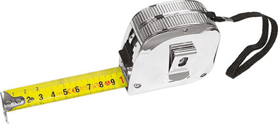 Tipo professionale con nastro ad elevata resistenza alla flessione. Con pulsante di bloccaggio del nastro e ritorno rapido. Nastro smaltato giallo. Custodia in ABS infrangibile, cromata, gancio per cintura. Classe di precisione II.