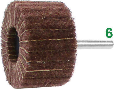 Tipo combinato fibroso-lamellare che consente l'effetto abrasivo fibra e lamelle con un maggiore sostegno del carico. In corindone, per lucidare leghe al Cr-Ni, leghe leggere, metalli dolci, alluminio e legno. Colore rosso. ATTACCO Ø mm 6.