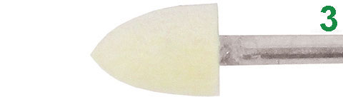 ATTACCO Ø mm 3.In feltro di lana.Per pulire e lucidare a specchio stampi e conchiglie.Velocità periferica indicata non oltre 10 m/sec.