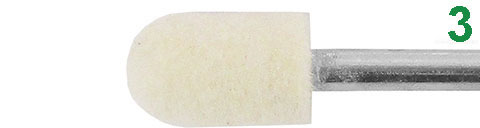 ATTACCO Ø mm 3.In feltro di lana.Per pulire e lucidare a specchio stampi e conchiglie.Velocità periferica indicata non oltre 10 m/sec.