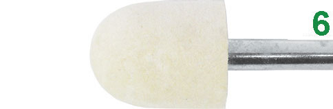 ATTACCO Ø mm 6. In feltro di lana. Per pulire e lucidare a specchio stampi e conchiglie. Velocità periferica indicata non oltre 10 m/sec.