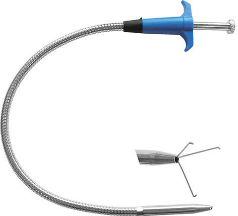 Tipo flessibile, azionamento a pulsante e pinzetta a 3 griffe, con impugnatura in materiale sintetico.Adatti per il recupero di piccole parti anche non metalliche in luoghi particolarmente inaccessibili.