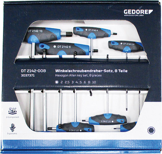Serie di 8 chiavi Art. 913 GS da mm 2 - 2,5 - 3 - 4 - 5 - 6 - 8 - 10.In confezione.