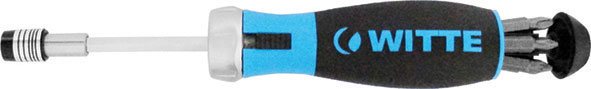 Tipo a cricco per uso D+S e fisso con 6 inserti assortiti nell'impugnatura. In acciaio al CROMO-VANADIO. Con attacco esagonale per inserti da 1/4". Impugnatura anatomica antiscivolo, ottenuta mediante la combinazione di materiali plastici rigidi e morbidi. Apertura del magazzino dei bits mediante tasto zigrinato, da arretrare, posto nell'impugnatura. Con magnete supplementare posteriore. Ghiera scorrevole e molla per il cambio rapido dei bits. Lunghezza totale mm 215.