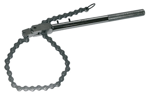 Leva con snodo, nichelata. Catena regolabile. Adatte per il montaggio e smontaggio filtri olio.