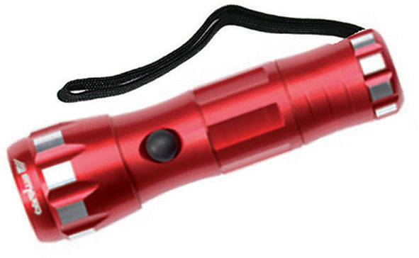 Con interruttore a 2 regolazioni della luminosità e funzione luce SOS intermittente.A luce frontale con 1 LED ultra chiaro.Lunghezza mm 120.Funzionamento a 3 batterie alcaline 1,5 V (tipo AAA- Art. 3600 C), NON IN DOTAZIONE.