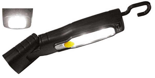 Lunghezza mm 185 e complete di gancio girevole e magnete. A batteria ricaricabile al litio (Li-ion) con cavo di carica USB, in dotazione. Con interruttore. A luce frontale con 3 LED a elevata potenza e luminosità e a luce laterale con 2 potentissimi LED extra luminosi, con speciale lente ottica con luminosità pari a 250 LUMEN. Autonomia 2,5 ore circa di uso continuo.