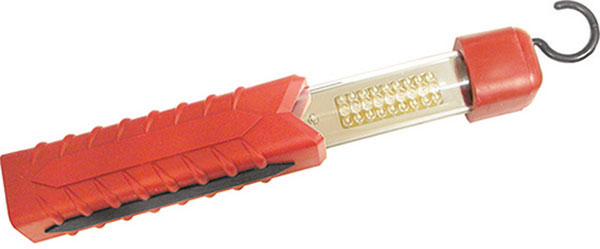 Lunghezza mm 320 complete di gancio girevole e 2 magneti integrati nell'impugnatura. Resistente agli spruzzi d'acqua e alla polvere (IP 54). A batteria ricaricabile al litio (Li-ion) con 2 caricabatterie, 1 a 100/240 V e 1 a 12 V con attacco per accendisigari delle auto, in dotazione. Con interruttore. A luce laterale con 27 LED ultra chiari, con luminosità 500 lm/m². Autonomia 4/5 ore circa di uso continuo.