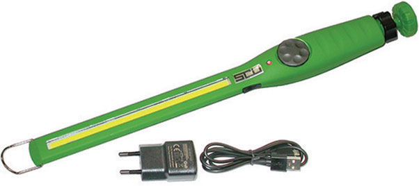 Lunghezza mm 375, con gancio in metallo e forte magnete nella base. A batteria ricaricabile al litio (Li-ion) con caricabatteria a 100/240 V, in dotazione. Ingresso carica USB. Con interruttore a rotella per regolare la luminosità e indicatore livello di carica batteria. POTENTISSIMA luce laterale a LED COB ultra chiari, con potenza pari a 15 W. Autonomia: a piena luce 2,5 ore circa/ a mezza luce 12 ore circa di uso continuo.